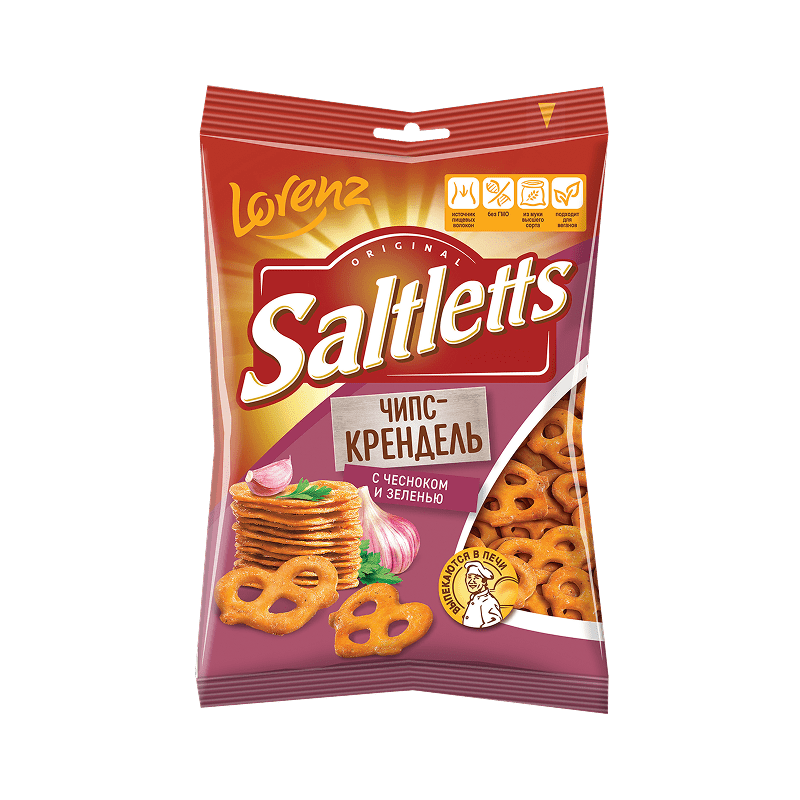Попробуйте тонкие и хрустящие чипс-крендели Saltletts, объединившие в себе традиции пекарного дела и аппетитный хруст чипсов. Пикантная чесночная нотка в сочетании с ароматными травами порадуют вас ярким вкусом чеснока и зелени. Как и все наши Saltletts, чипс-крендели выпекаются из муки высшего сорта, с использованием отборных ингредиентов и с соблюдением высоких стандартов качества.