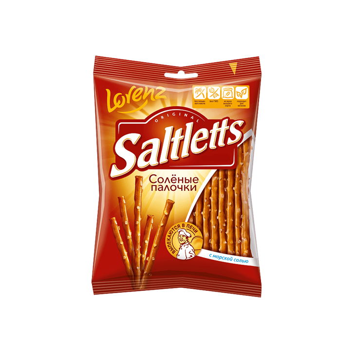 Палочки Saltletts уже давно являются бесспорной классикой нашей компании. Хрустящая соломка радует потребителей разных стран с 1935 года. Морская соль, богатая полезными микроэлементами, придает золотисто-коричневой соломке пикантность и изысканность. Большая удобная упаковка-коррекс поможет разделить радость вкуса с друзьями и близкими.