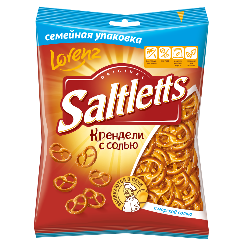 Мини-крендели — ещё один вариант классической немецкой закуски. Saltletts выпекаются в печи по традиционному немецкому рецепту из высококачественных ингредиентов и приправлены морской солью. Saltletts — настоящие, хрустящие, приносящие радость. Большая упаковка поможет разделить радость вкуса с друзьями и близкими