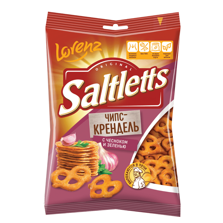 Попробуйте тонкие и хрустящие чипс-крендели Saltletts, объединившие в себе традиции пекарного дела и аппетитный хруст чипсов. Пикантная чесночная нотка в сочетании с ароматными травами порадуют вас ярким вкусом чеснока и зелени. Как и все наши Saltletts, чипс-крендели выпекаются из муки высшего сорта, с использованием отборных ингредиентов и с соблюдением высоких стандартов качества.