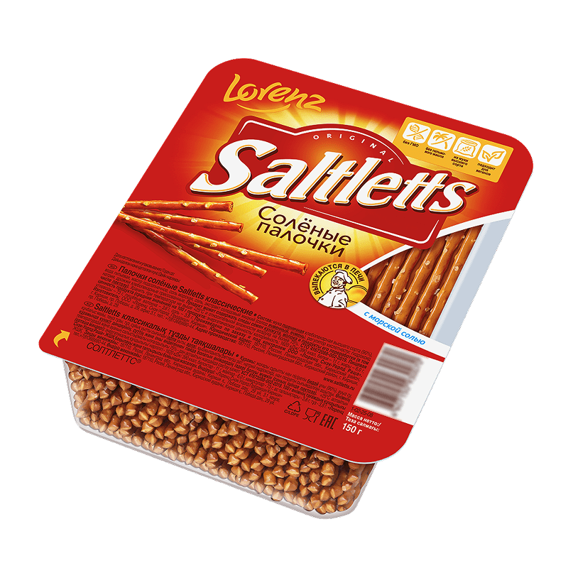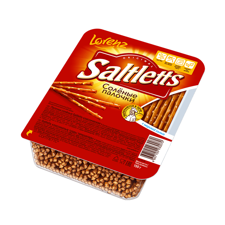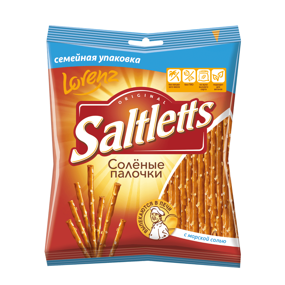 Палочки Saltletts уже давно являются бесспорной классикой нашей компании. Хрустящая соломка радует потребителей разных стран с 1935 года. Морская соль, богатая полезными микроэлементами, придает золотисто-коричневой соломке пикантность и изысканность. Большая удобная упаковка-коррекс поможет разделить радость вкуса с друзьями и близкими.