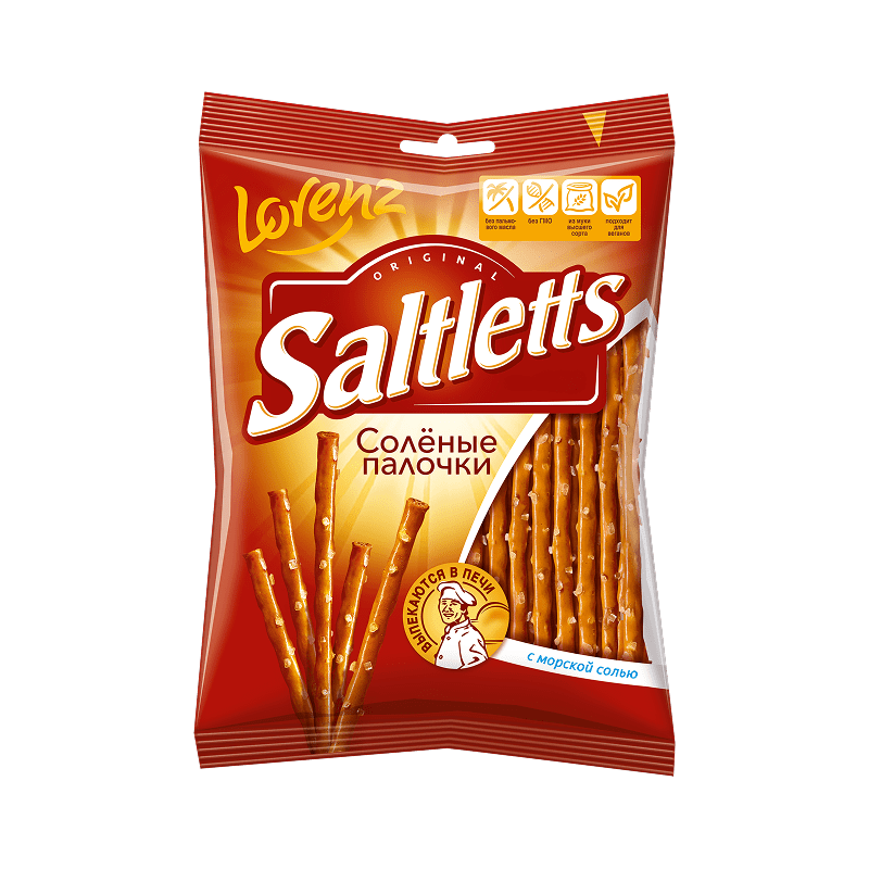 Палочки Saltletts уже давно являются бесспорной классикой нашей компании. Хрустящая соломка радует потребителей разных стран с 1935 года. Морская соль, богатая полезными микроэлементами, придает золотисто-коричневой соломке пикантность и изысканность.
